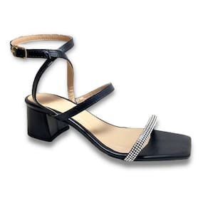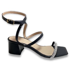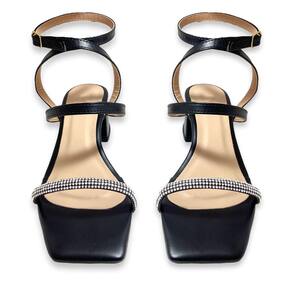 Sandália Feminina Salto Bloco Grosso Strass Preto - 38 - Preto