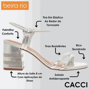 Sandália Feminina Salto Bloco Strass Elegante Chic Beira Rio - 38 - Prata