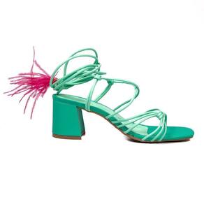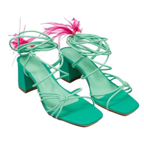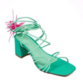 Sandália Feminina Salto Bloco Tiras Amarração Conforto - 36 - Verde Claro