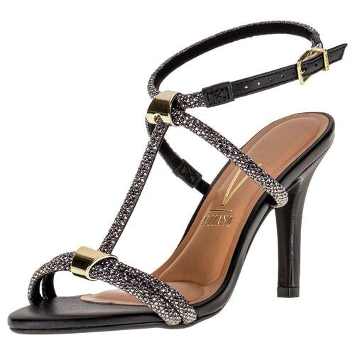 Sinta-se confiante ao desfilar com a Sandália Feminina Salto Fino Vizzano. Confeccionado em Metal Premium, detalhes em strass e fechamento por fivela no tornozelo. A palmilha em PU se molda aos pés e o solado em borracha conta com salto fino de onze centímetros.