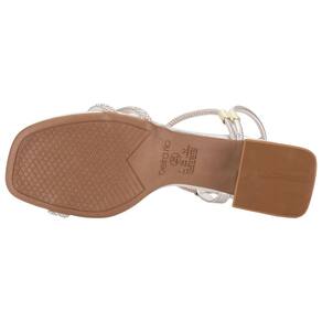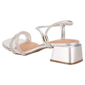 Sandália Feminina Salto Grosso Beira Rio 8423328, com salto grosso de 5 cm, ideal para um look sofisticado e confortável. Feita com tira pronta metalizado e strass, acabamento colado/costurado para maior durabilidade. A palmilha em PU e a sola de borracha garantem conforto e estabilidade.