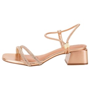 Sandália Feminina Salto Grosso Beira Rio 8423328, com salto grosso de 5 cm, ideal para um look sofisticado e confortável. Feita com tira pronta metalizado e strass, acabamento colado/costurado para maior durabilidade. A palmilha em PU e a sola de borracha garantem conforto e estabilidade.