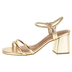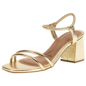 A Sandália Feminina Salto Grosso Beira Rio é confeccionada em material metalizado com tira pronta, acabamento em costura, palmilha em PU e solado em borracha com salto bloco de oito centímetros aproximadamente.