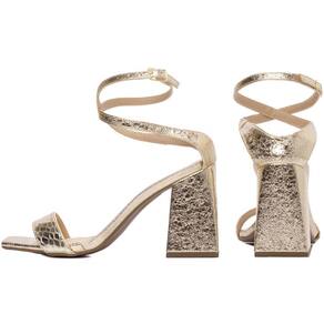 SANDáLIA FEMININA SALTO GROSSO METAL DOURADO AMARELO (322C)