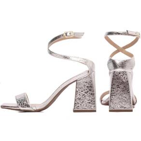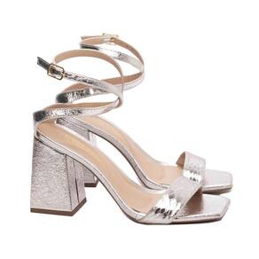 SANDáLIA FEMININA SALTO GROSSO METAL PRATA BRANCO (322B)