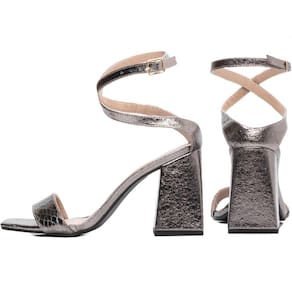 SANDáLIA FEMININA SALTO GROSSO METAL PRATA VELHO PRATA (322A)