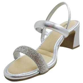 Sandália Feminina Salto Grosso Calce Fácil Dia a Dia com Strass Mississipi MC412 - Prata - 39