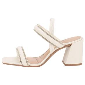 Sandália Feminina Salto Grosso Dakota Y8361 com salto grosso de 8,5 cm, estilo salto alto, confeccionada em Napa com detalhes em Strass. Possui acabamento colado e costurado, palmilha em PU e sola em borracha. A tira em elastano envolve o calcanhar, garantindo um calce ajustável e confortável.