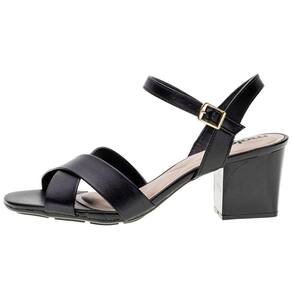 A Sandália Feminina Salto Grosso Moleca é confeccionada em Napa turim com acabamento em costura, fechamento por fivela de ajuste, palmilha em PU e solado em borracha com salto de sete centímetros aproximadamente.
