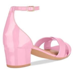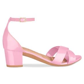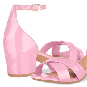 Sandália Feminina Salto Grosso Tiras Cruzadas Verniz - 34 - Rosa