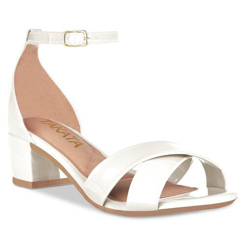 Sandália Feminina Salto Grosso Tiras Cruzadas Verniz - 40 - Branco