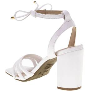 A Sandália Feminina Salto Grosso Via Marte é confeccionada em Napa com detalhes em Croco, cordão para fechamento em amarração, palmilha em PU, salto de dez centímetros e solado em borracha antiderrapante.
