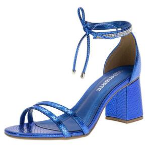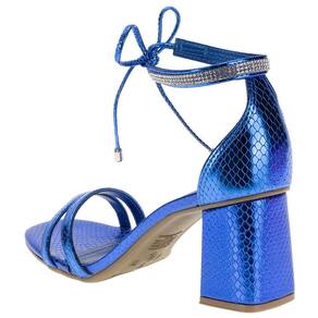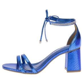 A Sandália Feminina Salto Grosso Via Marte é confeccionada em material nobre com aplicação de strass, acabamento em costura, fechamento por fita de amarração, palmilha em PU e solado em borracha antiderrapante com salto de sete centímetros.