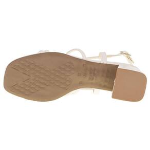 A Sandália Feminina Salto Grosso Via Marte é confeccionada em Napa de alta qualidade com acabamento em costura, fechamento por fivela de ajuste, palmilha em PU e solado em borracha antiderrapante com salto de sete centímetros.