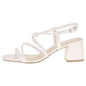 A Sandália Feminina Salto Grosso Via Marte é confeccionada em Napa de alta qualidade com acabamento em costura, fechamento por fivela de ajuste, palmilha em PU e solado em borracha antiderrapante com salto de sete centímetros.