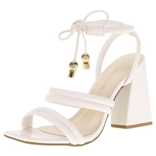A Sandália Feminina Salto Grosso Via Marte é confeccionada em Napa e Mini Croco com fechamento por tira de amarração, palmilha em PU e solado em borracha antiderrapante com salto de dez centímetros.
