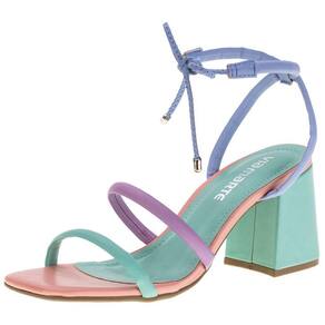 A Sandália Feminina Salto Grosso Via Marte é confeccionada em Napa com acabamento em costura, fechamento por tira de amarração, palmilha em PU e solado em borracha antiderrapante com salto grosso de oito centímetros.