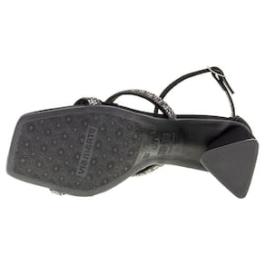 A Sandália Feminina Salto Grosso Via Marte é confeccionada em Nobuck de alta qualidade com acabamento em costura, detalhes de strass, fechamento por fivela de ajuste, palmilha em PU e solado em borracha antiderrapante com salto de dez centímetros. Ean: 7890562388219