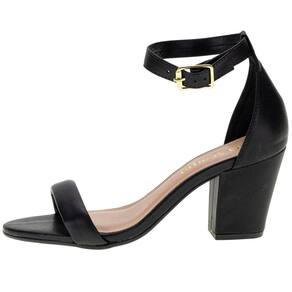 A Sandália Feminina Salto Grosso Via Scarpa é confeccionada em Napa com acabamento em costura, fechamento por fivela, palmilha em PU, salto de sete centímetros e solado em borracha antiderrapante.