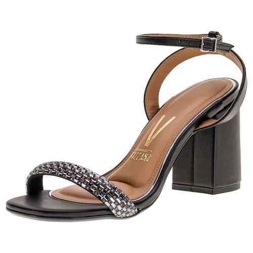 Eleve seu visual e conquiste as ruas com a Sandália Feminina Salto Grosso Vizzano. Confeccionado em Tira Pronta Strass e Pelica, por fechamento em fivela no tornozelo. A palmilha em PU proporciona um conforto sem igual, com solado em borracha de salto grosso de dez centímetros. Ean: 7900067576759