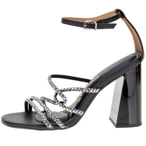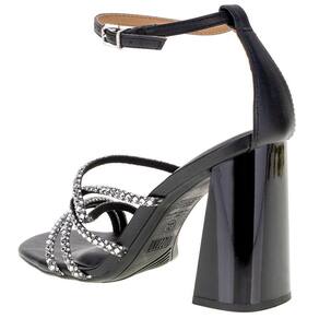 A Sandália Feminina Salto Grosso Vizzano é confeccionada em Pelica com detalhes em strass, fechamento por fivela de ajuste, palmilha em PU e solado em borracha antiderrapante com salto alto de dez centímetros e meio.