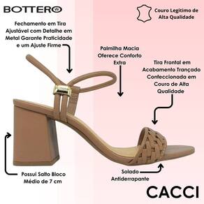 Essa sandália Bottero é a escolha perfeita para quem busca elegância com conforto. Confeccionada em couro de alta qualidade, ela traz um design sofisticado com tira frontal em acabamento trançado que valoriza os pés e dá um toque moderno ao visual. O salto bloco de altura média proporciona estabilidade ao caminhar, ideal para quem deseja ganhar alguns centímetros sem abrir mão da segurança e do bem-estar durante todo o dia.