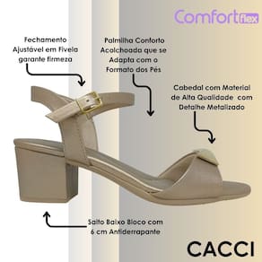 Esta sandália Comfortflex foi desenvolvida para mulheres que buscam equilíbrio entre estilo e bem-estar, proporcionando uma experiência agradável desde o primeiro uso. Seu design com salto médio traz presença sem abrir mão da leveza, resultando em um visual moderno que combina com produções sociais ou formais. O detalhe metalizado no cabedal acrescenta um toque refinado, enquanto a base estável favorece passos seguros ao longo do dia. A palmilha macia oferece conforto prolongado e suavidade ao caminhar, tornando este modelo uma escolha versátil para compromissos, eventos e rotinas diversas. O solado resistente complementa a proposta, garantindo mobilidade natural e firmeza em diferentes superfícies.