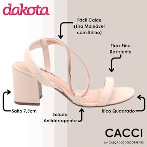 A Sandália Dakota Salto Bloco Tiras Brilho Calce Fácil Feminino é a escolha perfeita para adicionar um toque de sofisticação ao seu visual. Com seu salto bloco alto de 7,5 cm, oferece conforto ao mesmo tempo em que eleva seu estilo. As tiras finas que envolvem o pé garantem um visual delicado, tornando-a uma opção versátil para o dia a dia, momentos de lazer ou até mesmo para uma noite na balada.