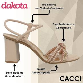 A Sandália Salto Médio Dakota é a opção perfeita para quem procura sofisticação e conforto em um único modelo. Seu design elegante, aliado ao toque moderno das tiras, vai garantir um visual impecável e muito conforto para o seu dia a dia.