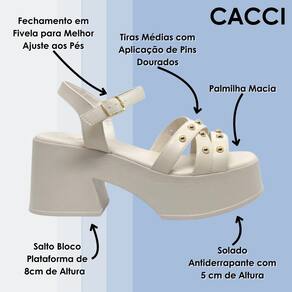 Sandália Feminina Salto Médio Platafforma Conforto Cacci - Branco - 38