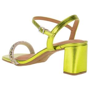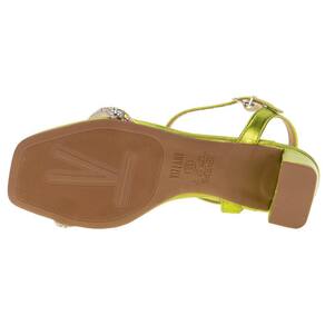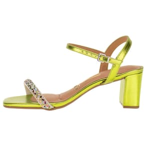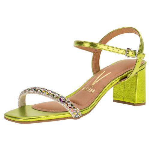 A Sandália Feminina Salto Médio Vizzano é confeccionada em material premium envernizado com acabamento em costura, aplicação de strass no cabedal, fechamento por fivela de ajuste, palmilha em PU confort e solado em borracha antiderrapante com salto de seis centímetros.