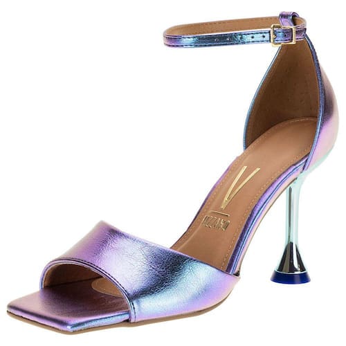 O Tamanco Feminino Salto Taça Via Marte é confeccionado em material metalizado com aplicação de strass, acabamento em costura, palmilha em PU e solado em borracha com salto de dez centímetros.