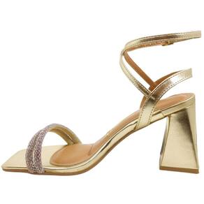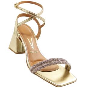 A sandália Feminina de Salto Alto Vizzano vem sem detalhes aparentes em seu cabedal. A palmilha com formato anatômico e macia garante conforto ao caminhar. O calcanhar é aberto e duas tiras que saem pela lateral do pé, envolvendo o tornozelo ficam responsáveis pelo ajuste e fechamento que se dá por uma fivela com 7 níveis de ajuste. Duas tiras delicadas e revestidas de strass envolvem os dedos, trazendo brilho além do conforto.