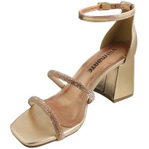 Sandália Feminina Social Salto Médio com Strass Bico Quadrado Via Marte 23-10113