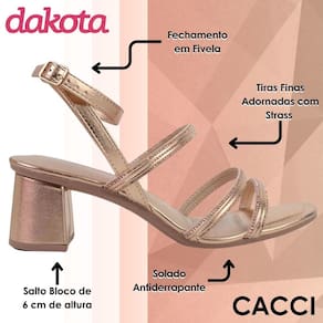 Elegância e conforto para você acompanhar em qualquer ocasião! A Sandália Salto Médio Dakota é a escolha perfeita para quem busca um toque sofisticado sem abrir a mão do bem-estar.