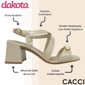 Essa sandália Dakota é perfeita para quem busca elegância e conforto em um só calçado. Com design sofisticado e acabamento refinado, ela valoriza o visual e traz um toque de modernidade para qualquer produção. A palmilha macia proporciona uma sensação de aconchego aos pés, permitindo o uso por longos períodos sem desconforto, enquanto as tiras cruzadas garantem um ajuste firme e seguro, abraçando o pé com delicadeza. A fivela ajustável permite personalizar o calce, oferecendo estabilidade e segurança a cada passo, além de facilitar o uso no dia a dia.