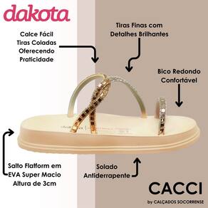 A Sandália Calce Fácil Dakota Flatform com Brilhos conta com sola anatômica de EVA super Macia, proporcionando uma experiência leve e suave para seus pés, tornando-a perfeita para o dia a dia ou momentos de lazer. O toque de glamour fica por conta das tiras revestidas de brilhos que envolvem delicadamente o pé, elevando a sofisticação dos seus looks. Feita com material sintético premium de alta qualidade, esta sandália não apenas é estilosa, mas também é durável e resistente, garantindo que você esteja sempre na moda, independente da ocasião.