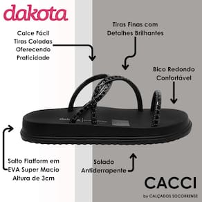 A Sandália Calce Fácil Dakota Flatform com Brilhos conta com sola anatômica de EVA super Macia, proporcionando uma experiência leve e suave para seus pés, tornando-a perfeita para o dia a dia ou momentos de lazer. O toque de glamour fica por conta das tiras revestidas de brilhos que envolvem delicadamente o pé, elevando a sofisticação dos seus looks. Feita com material sintético premium de alta qualidade, esta sandália não apenas é estilosa, mas também é durável e resistente, garantindo que você esteja sempre na moda, independente da ocasião.