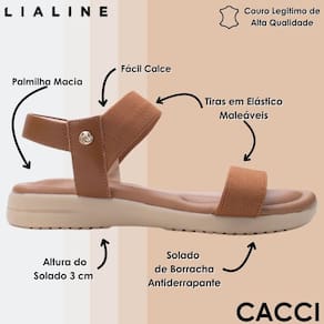 O modelo possui tecnologia Calce Fácil, com modelagem inteligente com tiras em elástico que se adapta o calçado a ergonomia dos pés. Ter uma sandália confortável em seu closet é fundamental! A Lia Line oferece modelos perfeitos para diferentes estilos e momentos. Surpreenda-se com a nossa linha Comfort com calçados confortáveis e materiais de alta qualidade!