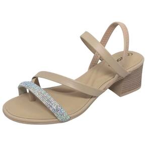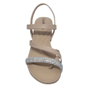 Sandália Feminina Tira Glitter Salto Bloco Comfortflex - Bege Claro - 35