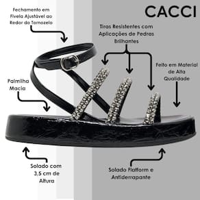 Descubra o equilíbrio perfeito entre estilo e conforto com nossa sandália flatform Cacci, uma combinação perfeita entre moda e conforto. Com um design moderno, ela oferece uma opção versátil para quem busca praticidade sem perder o charme.