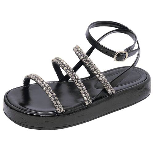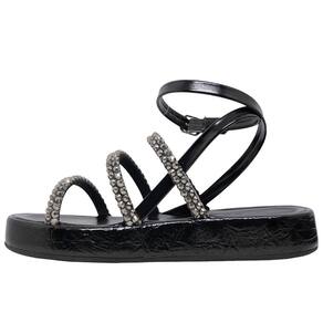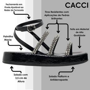 Sandália Feminina Tiras Brilho Conforto Flatform Cacci - 37 - Preto