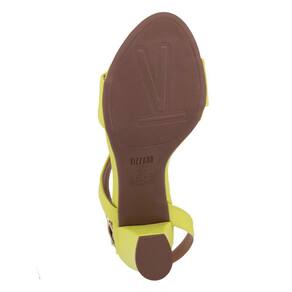 Sandália Vizzano 6262.1005 é um modelo com salto grosso e apresenta sustentação para calçar confortavelmente. Seu cabedal é fabricado em material sintético e acabamento liso, tem como características bico arredondado e tiras que contornam todo o peito do pé, o fechamento é lateral por tira com 7 furos para o ajuste e fivela dourada, seu calcanhar é aberto e a palmilha é fixa em material sintético acolchoado tornando o sapato confortável, uma vez ajustado o modelo permite o calce fácil. O seu salto bloco é médio e tem formato afunilado, o salto é revestido pelo mesmo material do calçado e tem 7cm de altura, o solado apresenta frisos para maior segurança.