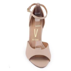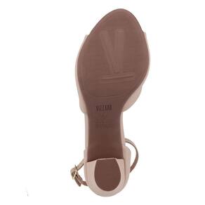 Sandália Vizzano 6262.406 é um modelo com salto grosso e apresenta sustentação para calçar confortavelmente. Seu cabedal é fabricado em material sintético e acabamento liso, tem como características bico arredondado e tira única frontal com um decote contornando o peito do pé, o fechamento é por tira fina no tornozelo com 7 furos para o ajuste e fivela dourada, seu calcanhar é fechado e a palmilha é fixa em material sintético acolchoado tornando o sapato confortável. O seu salto bloco é médio e tem formato afunilado, o salto é revestido pelo mesmo material do calçado e tem 7cm de altura, o solado apresenta frisos para maior segurança.