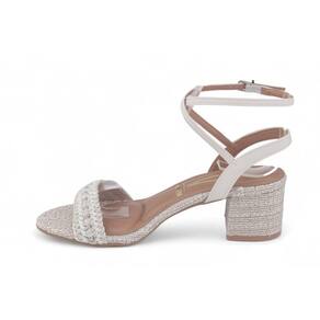 Sandália Feminina Vizzano 6291.147 Salto Bloco Tramado BRANCO OFF 35