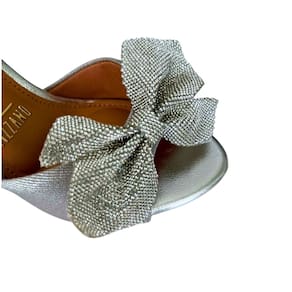 Sandália Feminina Vizzano Salto Alto Destalhe Laço Sandália Feminina Vizzano Salto Alto Destalhe Laço possui um cabedal em lona metálica, oferecendo um acabamento elegante. O material de fabricação é lona com detalhes em metal, garantindo durabilidade e estilo. O bico é simétrico, com tiras de espessura média posicionadas em sentido reto próximo aos dedos. O fechamento é feito por fivela lateral, facilitando o ajuste. A construção é delicada, com salto alto de aproximadamente 10 cm. A palmilha é acolchoada para conforto, e a calcanheira é levemente estruturada. O forro interior é em material têxtil, e o solado é em emborrachado, proporcionando aderência. O estilo é sofisticado com um design moderno e detalhes decorativos metálicos.