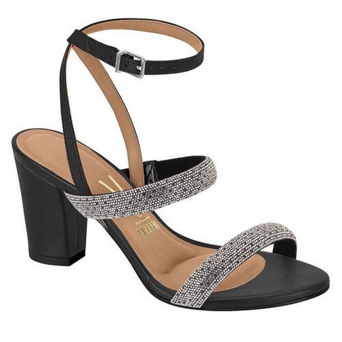 Sandália Feminina Vizzano Salto Grosso Napa Strass