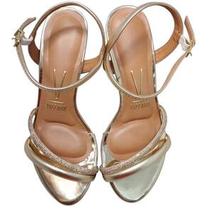 Sandalia Feminina Vizzano Salto Strass Metalizada 6262.1034 - 35 - Amarelo Ouro