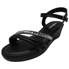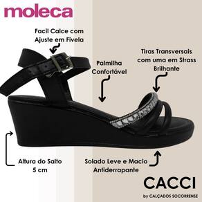 Sandalia Feminino Anabela Baixa Conforto Brilho Moleca - 36 - Preto