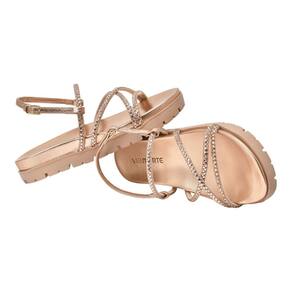 Sandália Flatform Conforto Moderna Tiras Strass Via Marte - Bege - 38